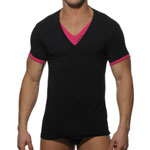 昵酷回复:您好,这是一件黑色的t恤,在领部和袖口带有粉色拼色设计,商品为独立包装,只包含一件T恤,并不包含模特和模特穿的内裤。